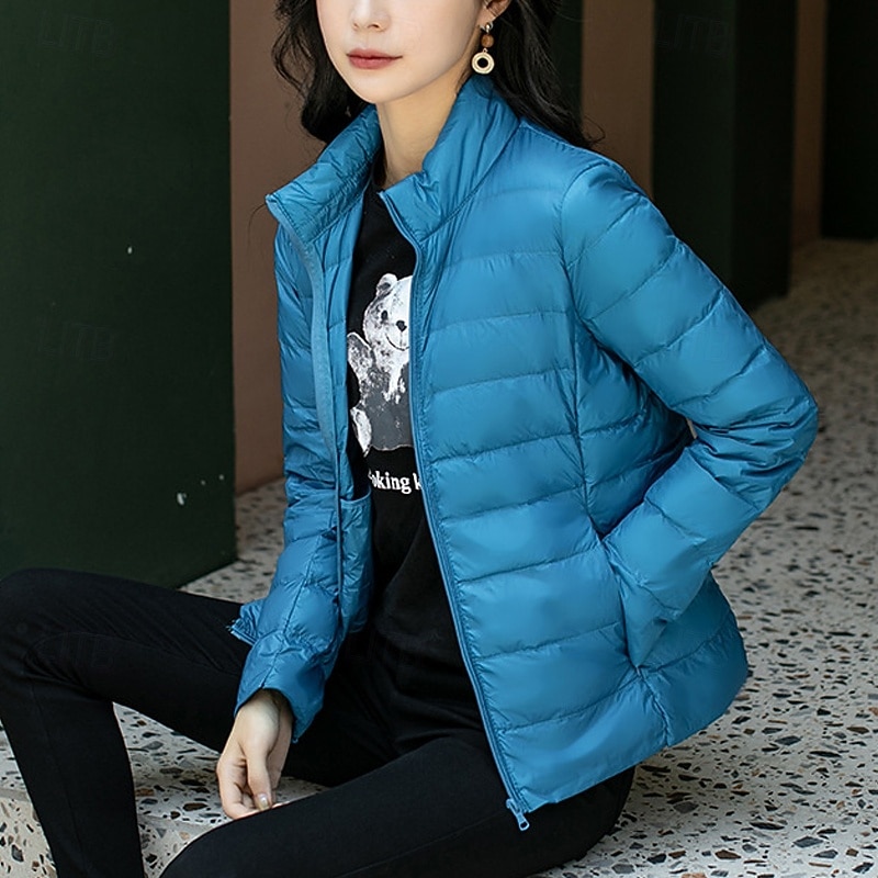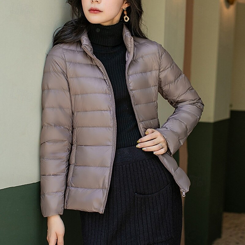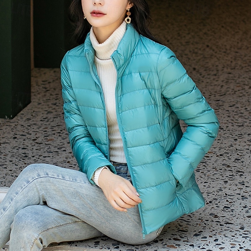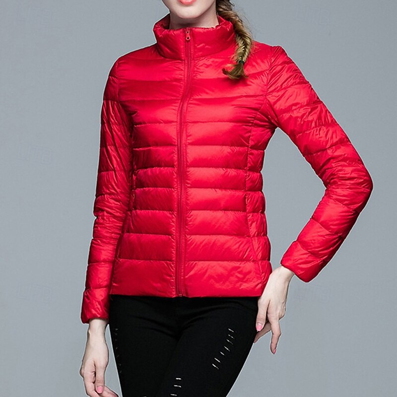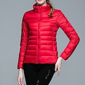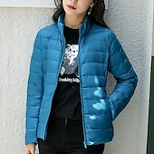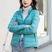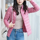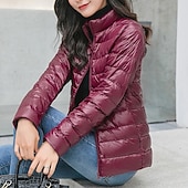 More information about Women's Down Jacket Puffer Jacket Warm Comfortable Zipper Pocket Fashion Modern Casual Plain Going out Weekend Zipper Regular Stand Collar Regular Fit Long Sleeve Outerwear Black Pink Wine Winter