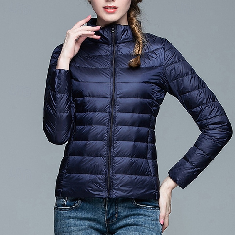 Women's Down Jacket Puffer Jacket Warm Comfortable Zipper Pocket Fashion Modern Casual Plain Going out Weekend Zipper Regular Stand Collar Regular Fit Long Sleeve Outerwear Black Pink Wine Winter 25