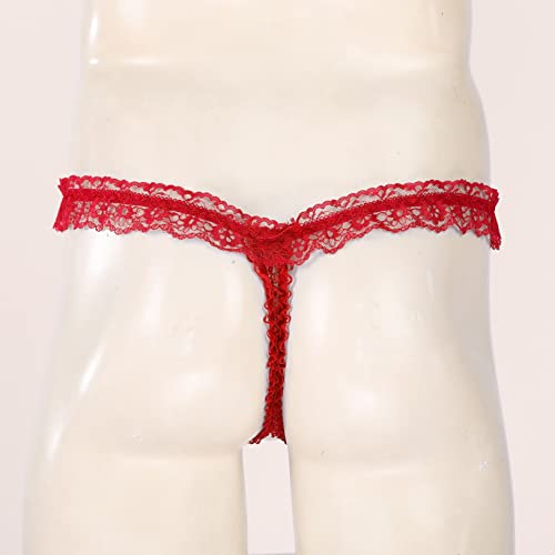 Men's Sissy Hollow Out Lace G-String Thong Bowknot T-Back Briefs Open Front Underwear 6