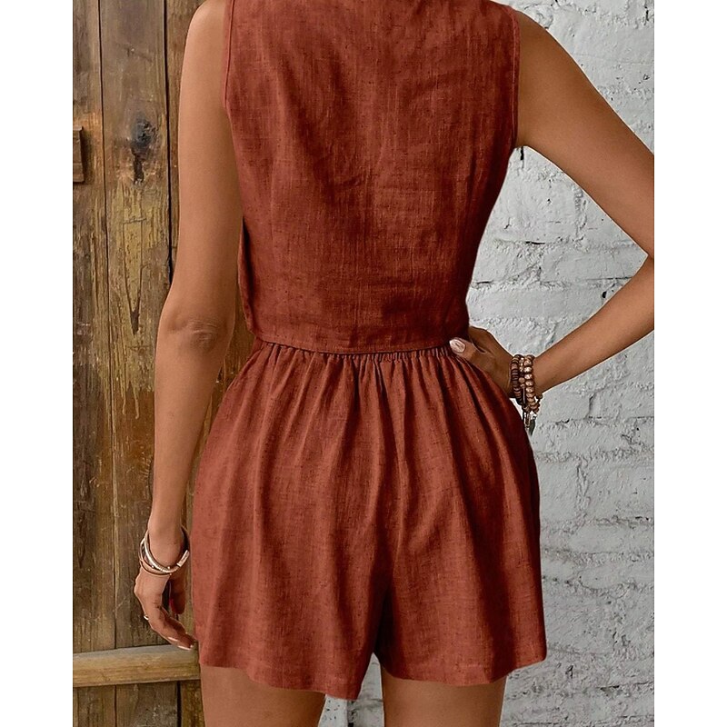 More information about Women's Active Blouse Vest Shorts Sets Sleeveless V Neck Solid Color Dubbele Rij Knopen Holiday Casual Daily Black Wine Army Green Summer Regular Fit