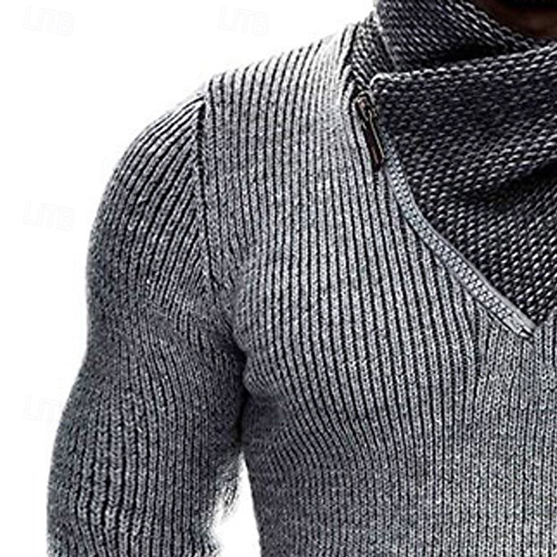 More information about Men's Sweater Pullover Sweater Jumper Ribbed Knit Regular Tops Knitted Slim Fit Plain Shawl Knitwear Fashion Casual Daily Wear Clothing Apparel Winter Black White S M L