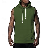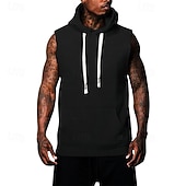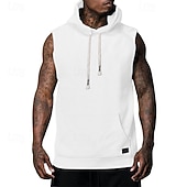 More information about Men's Tank Top Vest Top Undershirt Sleeveless Shirt Sleeveless Hooded Summer Plain Fashion Designer Basic Jacquard Front Pocket Vacation Street Going out Black White Khaki Top Tee for Men
