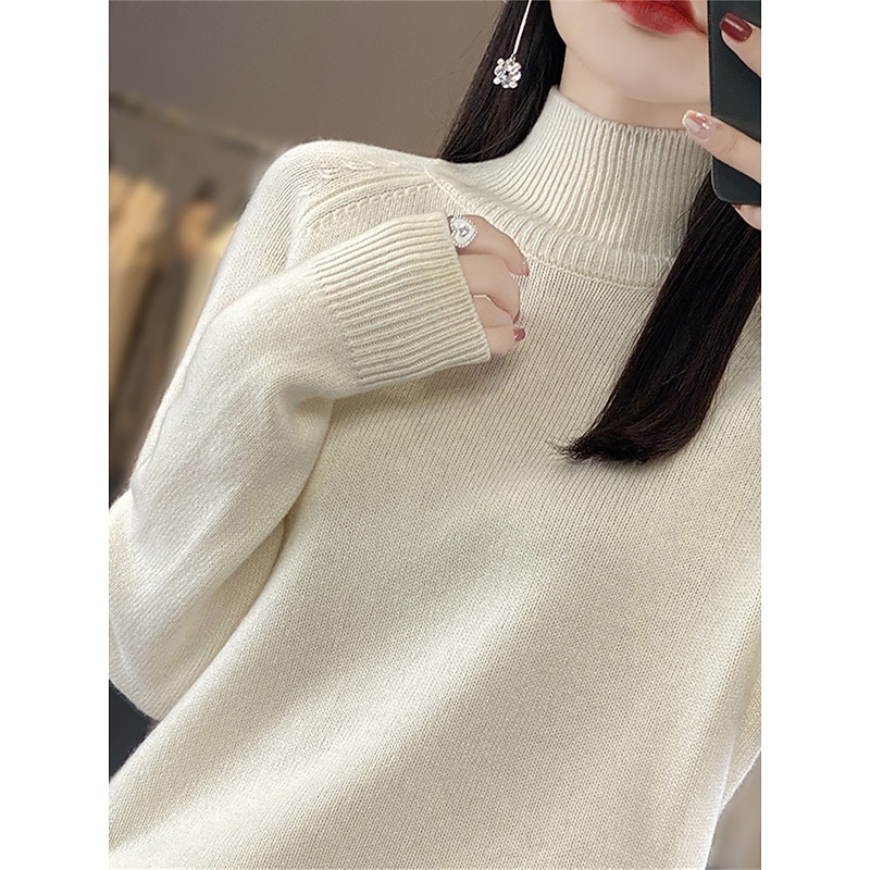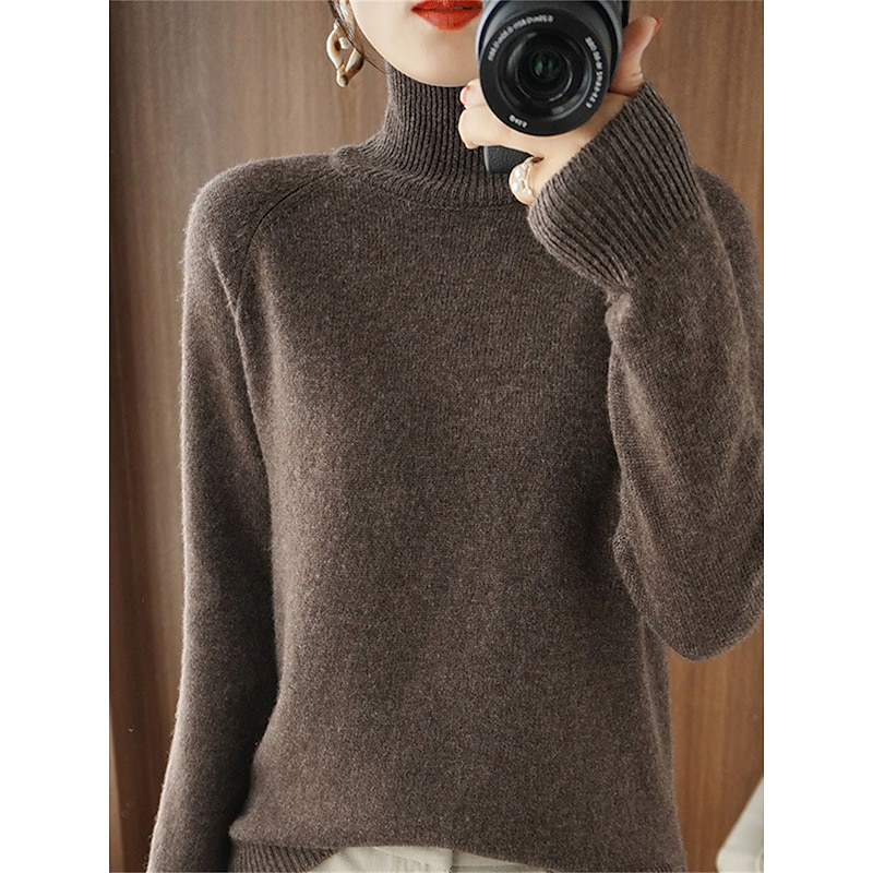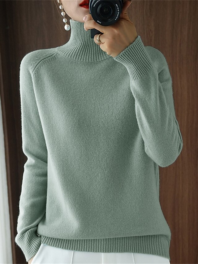 The sweater boasts a classic turtleneck design, enhancing its sophisticated appeal and providing added warmth during cooler weather. Available in a variety of solid colors including mint green, the sweater's subtle hue adds a soothing touch to any outfit.