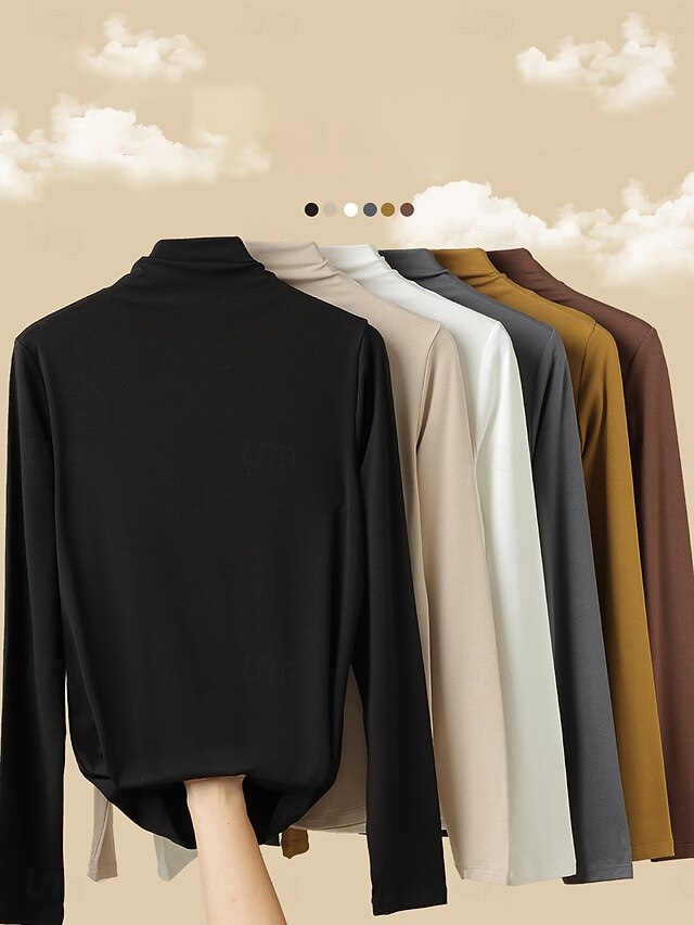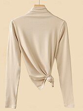 More information about Women's Blouse Solid Color Stylish Casual Long Sleeve Turtleneck Regular Tops Daily Black White Pink Brown Beige Spring Fall Winter