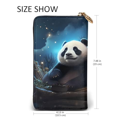 Panda and Moon Picture Leather Long Clutch Wallet for Fashionable Girls and Women - Durable, Stylish, and Functional, Black, One Size 1