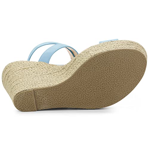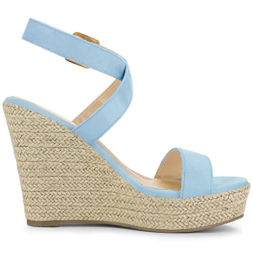 Allegra K Women's Slingback Crisscross Espadrille Wedge Sky Blue Heel Sandals 7 M US