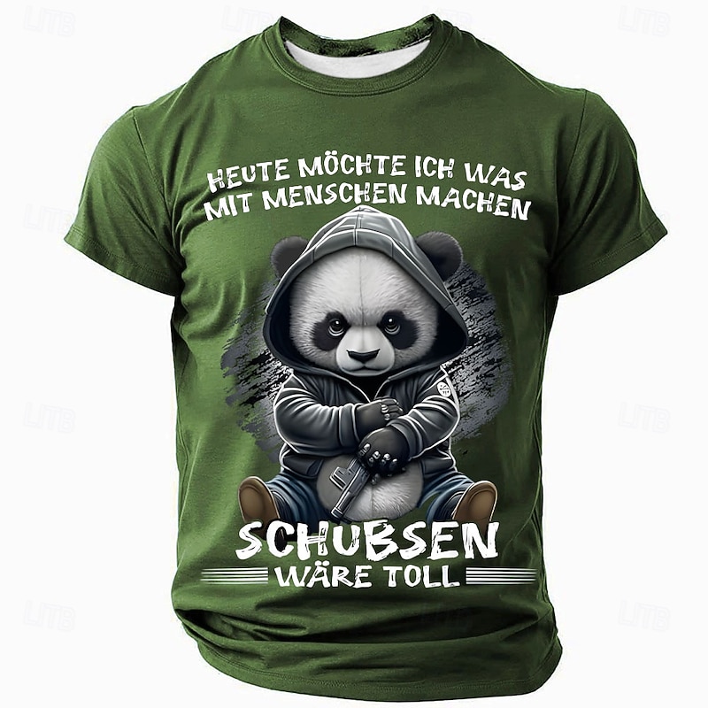 HOT ! Men's Funny Panda Graphic T-Shirt - 'Today I Want to Push People' Sarcastic Quote Lifestyle Tee Short Sleeve