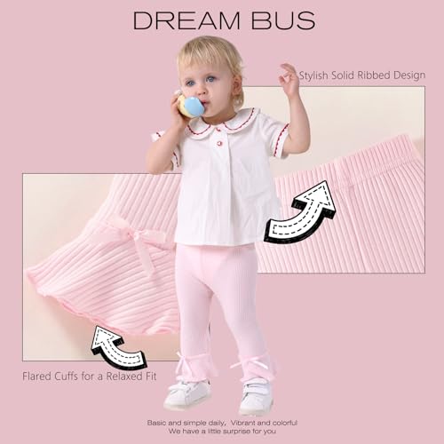 DREAM BUS 5 Pack Baby Pants Toddler Girl Ribbed Ruffle Bell Bottoms Toddler Leggings Baby Boy Pants Newborn Girl Flare Pants 2