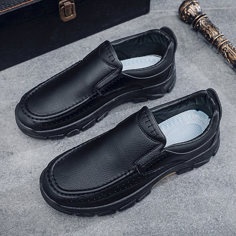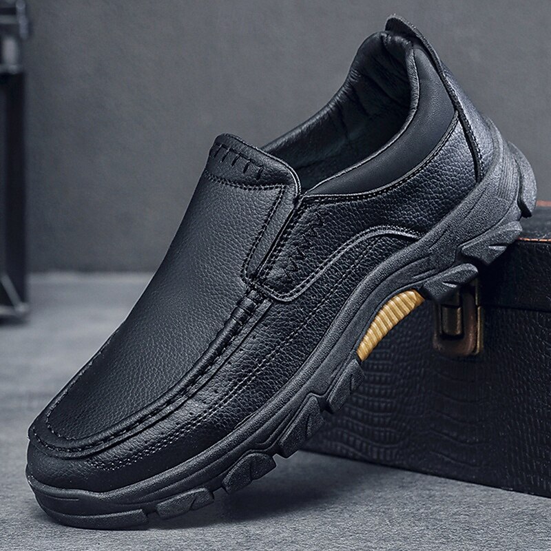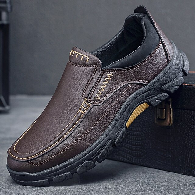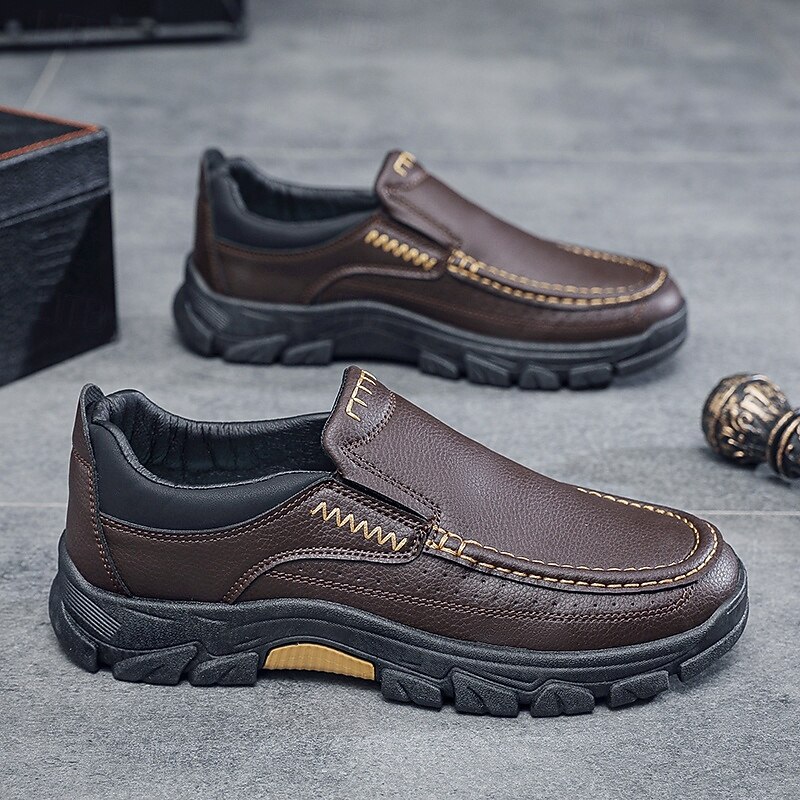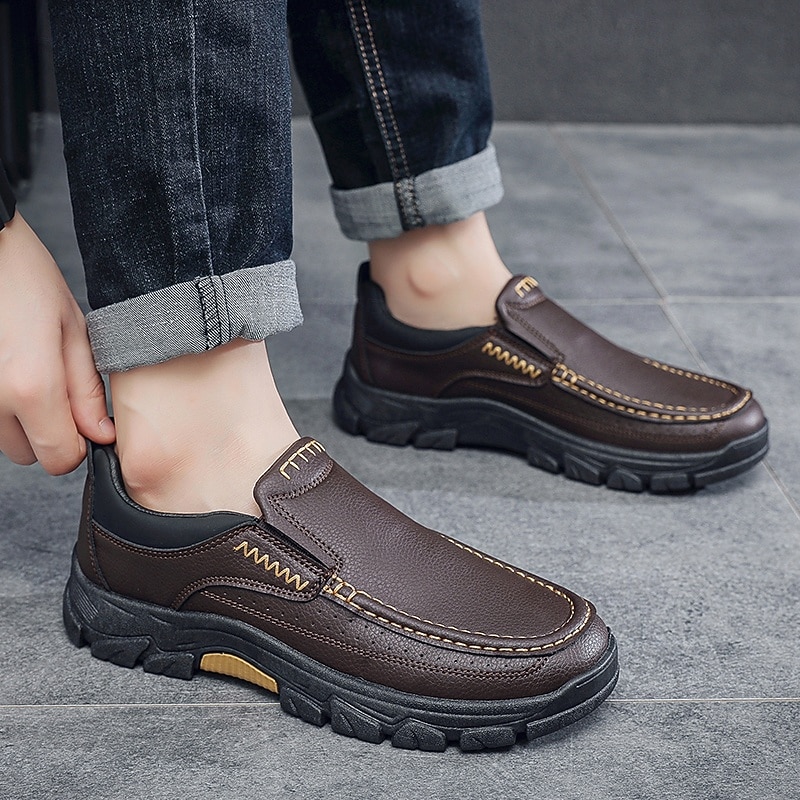 HOT ! Men's Dark Brown Slip-On Leather Shoes with Rugged Sole - Durable and Fashionable Footwear for Outdoor Use