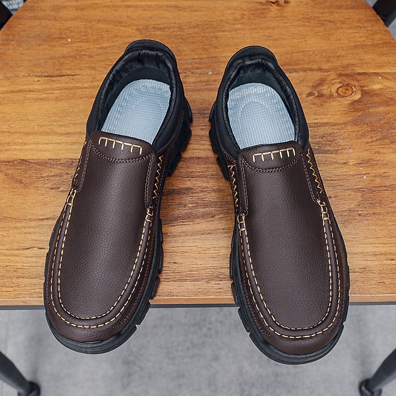 Men's Dark Brown Slip-On Leather Shoes with Rugged Sole - Durable and Fashionable Footwear for Outdoor Use 22