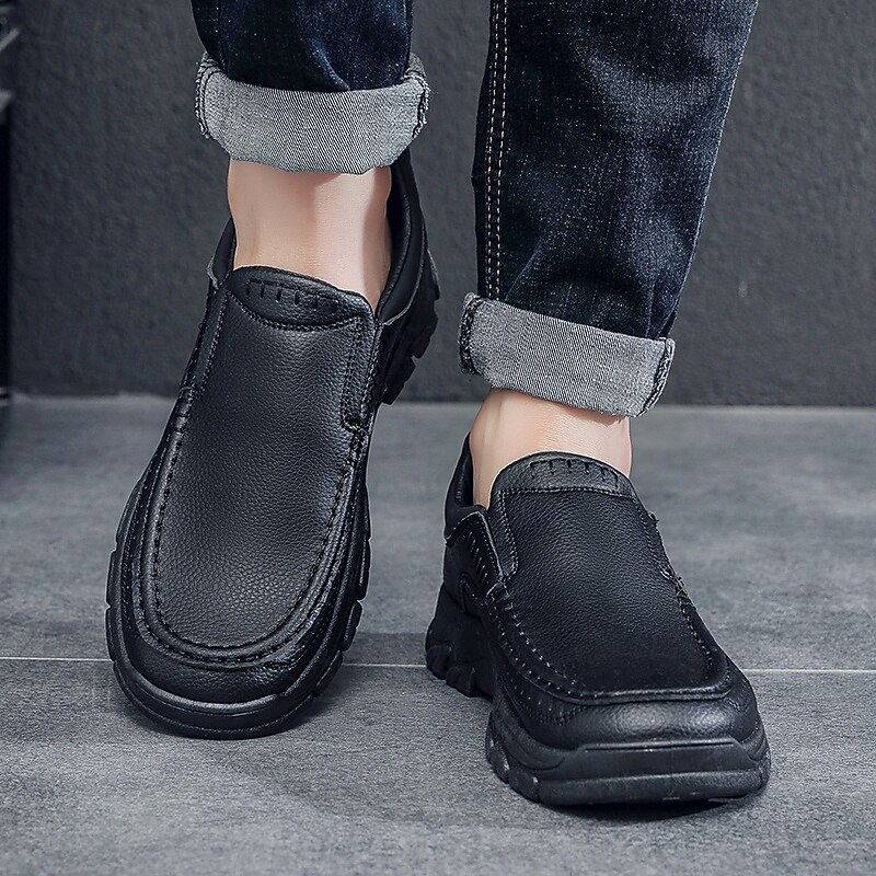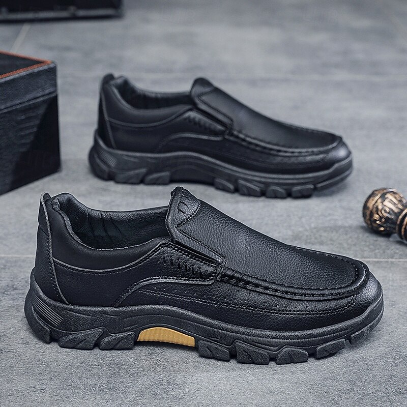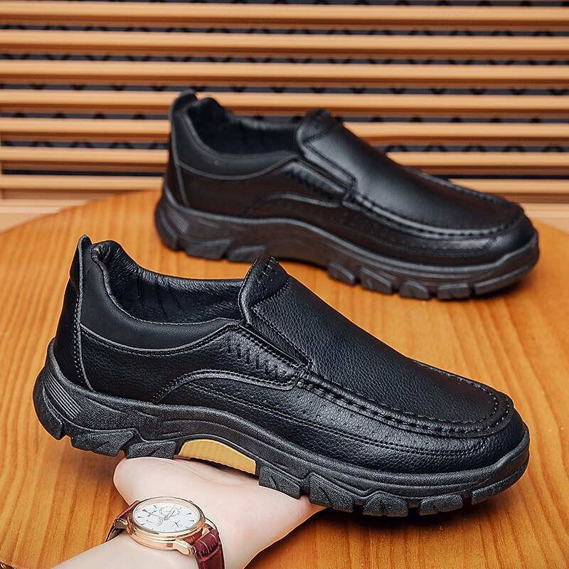 More information about Men's Dark Brown Slip-On Leather Shoes with Rugged Sole - Durable and Fashionable Footwear for Outdoor Use