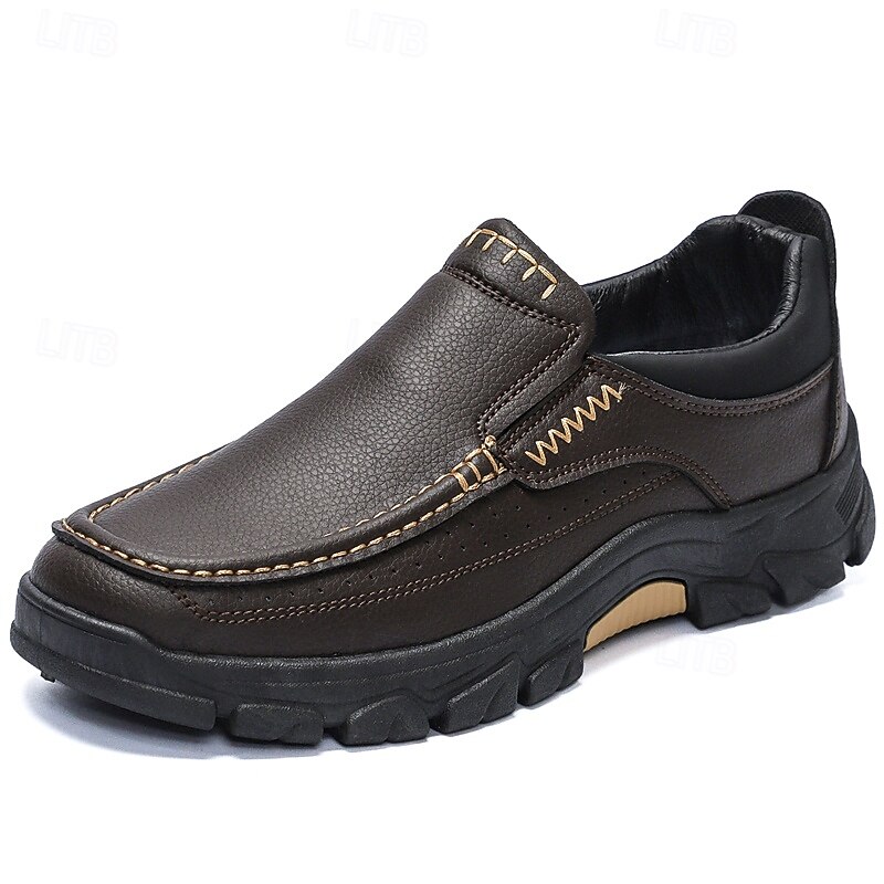 Men's Dark Brown Slip-On Leather Shoes with Rugged Sole - Durable and Fashionable Footwear for Outdoor Use 24