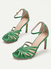 More information about Women's Green Strappy Stiletto Sandals with Ankle Strap, Elegant Open-Toe High Heels for Parties, Weddings, and Formal Events
