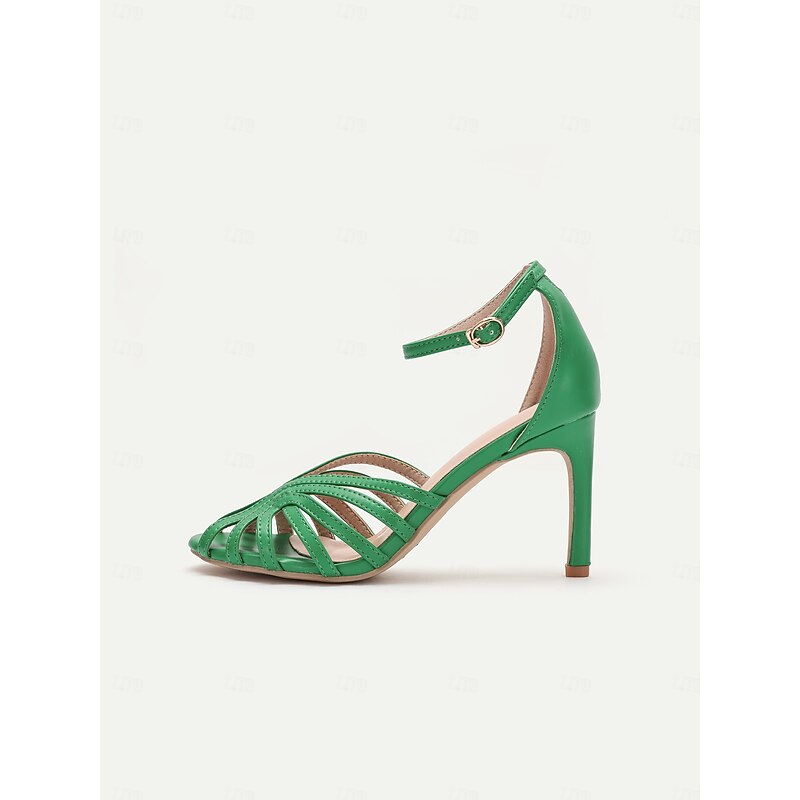 HOT ! Women's Green Strappy Stiletto Sandals with Ankle Strap, Elegant Open-Toe High Heels for Parties, Weddings, and Formal Events