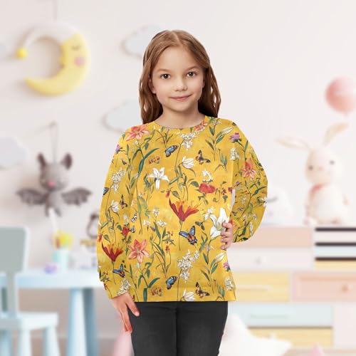 JUNZAN Retro Butterflies Flowers Yellow Big Boys Hoodie Sweatshirt Crewneck Kids Hoodies Boys Athletic 4T 5