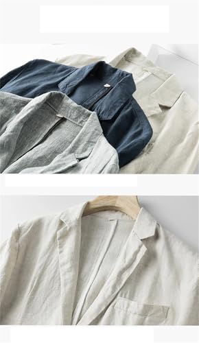 Men's Linen Blazer Thin Vintage Long Sleeve Single Breasted Lapel Business Casual Suit Jackets 4