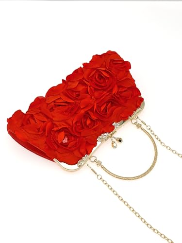 More information about Women's 3D Rose Clutch Purses Satin Floral Crossbody Bags Evening Wedding Party Handbag With Chain