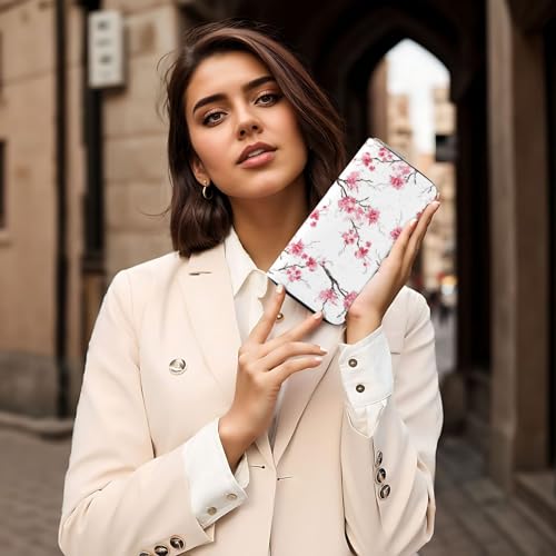 HOT ! Pu Leather Wallet For Women Girl, Zip Around Credit Card Holder Cherry Blossom Long Wallet Clutch Purse Waterproof Travel Handbag