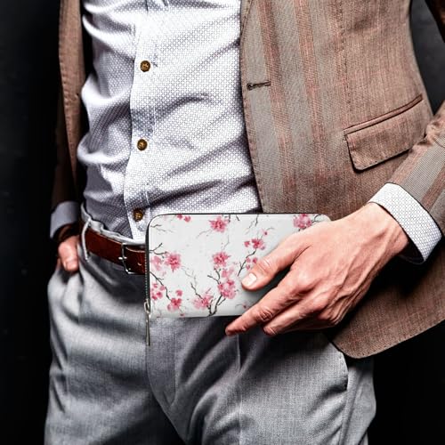 Pu Leather Wallet For Women Girl, Zip Around Credit Card Holder Cherry Blossom Long Wallet Clutch Purse Waterproof Travel Handbag 5