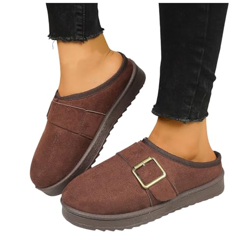 HOT ! Women's Slippers Fuzzy Cozy Short Ankle Shoes Indoor Outdoor Mules Warm House Slippers for Woman Cute Fluffy Clogs Womens Platform Fleece Lined Memory Foam Suede Winter Plush Slipper