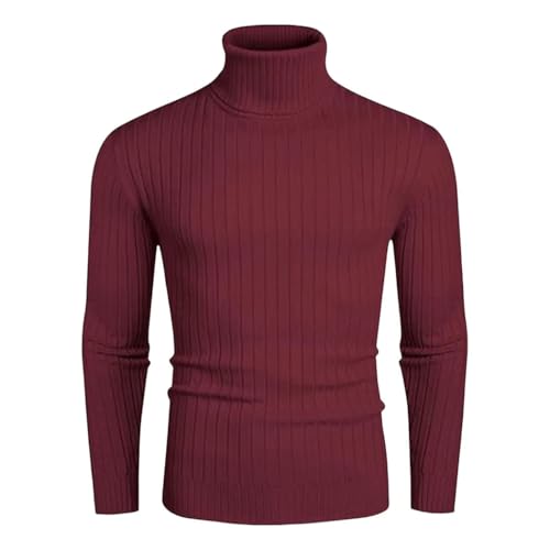 Men's Winter Turtleneck Warm Knit Sweaters Thickened Versatile Solid Color Slim Vertical Strips Pullovers 5