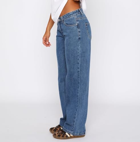 • Features: Low rise jeans pants for women,vintage jeans for women,low waist create a flattering silhouette, zip closure with buttons, multiple pocket designs, the straight-leg design provides a comfortable and relaxed fit, so comfortable
