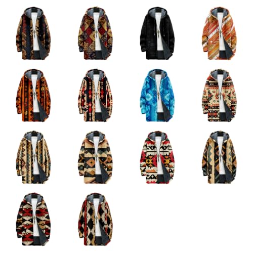 Cardigan Mens Hoodies Zip Up Aztec Tribe Ethnic Fleece Fall Oversized Novelty Open Front Drawstring Hooded Coat 6