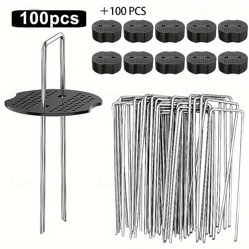 HOT ! 100/200PCS Heavy-Duty Galvanized Iron U-Shaped Tent Stakes with Washers – For Outdoor Tents, Garden Fabrics, Weed Barriers & Ground Wire Mesh