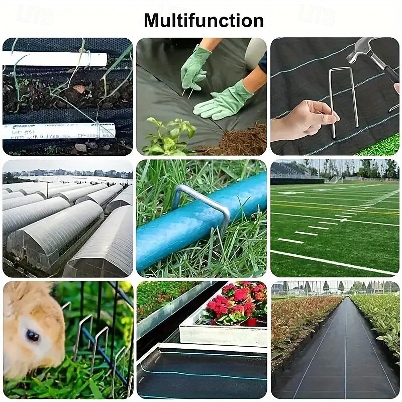 100/200PCS Heavy-Duty Galvanized Iron U-Shaped Tent Stakes with Washers – For Outdoor Tents, Garden Fabrics, Weed Barriers & Ground Wire Mesh 9