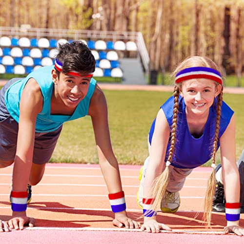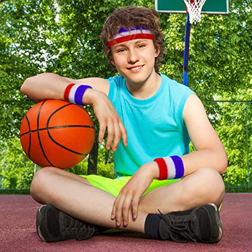 Hungdao 6 Pieces Sweatband Set Sports Headband Wristband Set Head Band Wristbands Sweat Bands for Basketball Football Running 4