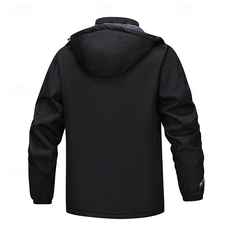 More information about Men's Outdoor Jacket Fleece Jacket Raincoat Hiking Jacket Vacation Daily Thermal Warm Windproof Pocket Fleece Fall Winter Plain Fashion Streetwear Hooded Regular Black Khaki Army Green Gray Jacket