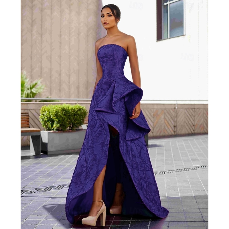 Ball Gown A-Line Evening Gown Elegant Dress Formal Wedding Floor Length Sleeveless StraplessDress Nylon with Slit Wedding Guest Dress 1