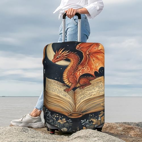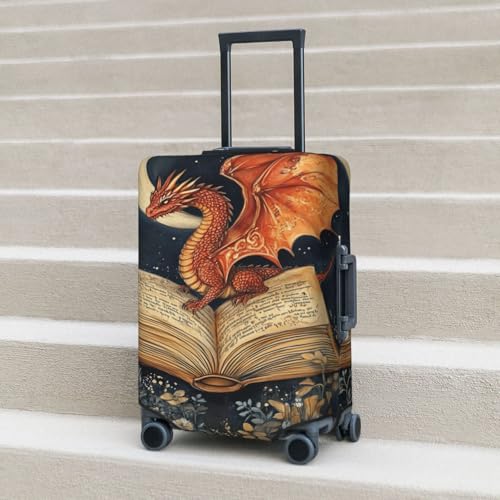 HOT ! Red Dragon Perched On Open Book Elastic Travel Luggage Covers Dustproof Scratch-Resistant Suitcase Protector Fit 22-24 Inch