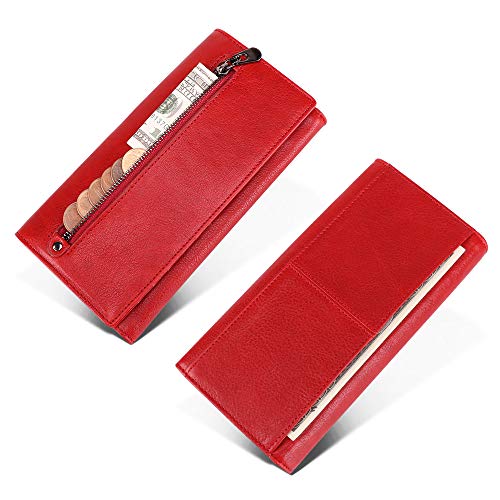 More information about Leather RFID Blocking Women's Trifold Clutch, Card Holder Phone Slot Ticket Book Organizer Zipper Coin Wallet (Red)