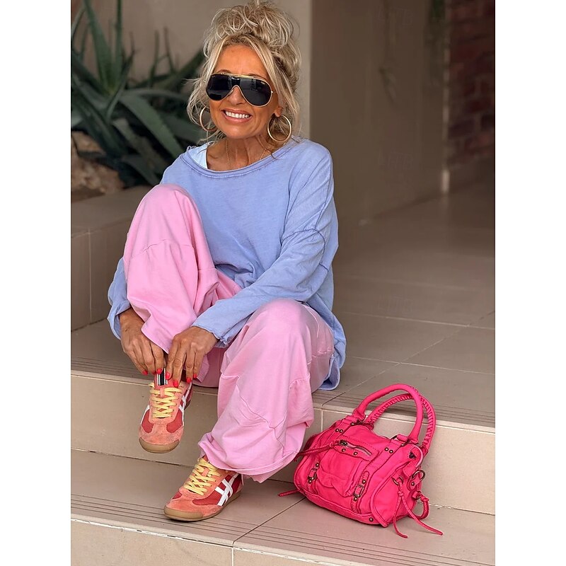Women's Pants Trousers Casual Full Length Natural Solid Colored Micro-elastic Daily Wear Grey Yellow Pink Summer 24