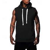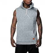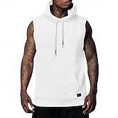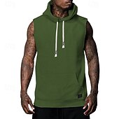 More information about Men's Hoodie Black White Army Green Khaki Gray Hooded Plain Pocket Sports & Outdoor Casual Daily Streetwear Cool Designer Summer Clothing Apparel Hoodies Sweatshirts Sleeveless Loose Fit