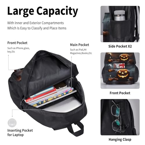 • Versatile Compartments: The Halloween Pumpkin Print Lightweight Casual Daily Travel Backpack Comes With A Main Pocket That Includes A Large Inner Pocket For Organizing Your Items, And Two Side Mesh Pockets For Holding Bottles Or Umbrellas. The Lunch Bag Has A Smooth Double Zipper, A Soft Top Handle, And An Adjustable Shoulder Strap, With An Internal Eva And Pe Cotton Lining For Excellent Insulation.