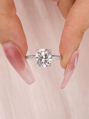 3.0 Carat Cushion Cut Moissanite Engagement Ring, D Color VVS1 Clarity, 925 Sterling Silver Simulated Diamond Ring for Women 6