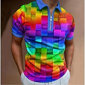 More information about Men's Rainbow Grid Pattern Zip Polo Short Sleeve Turndown Casual Daily Modern Outdoor Sports & Outdoor Dailywear Zipper Summer Rainbow
