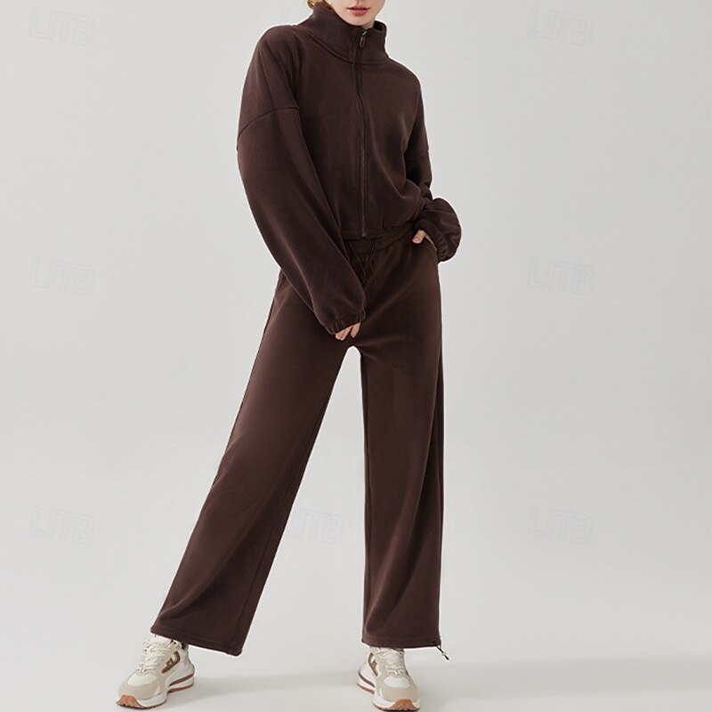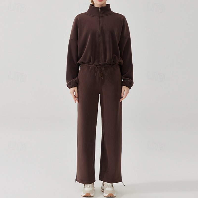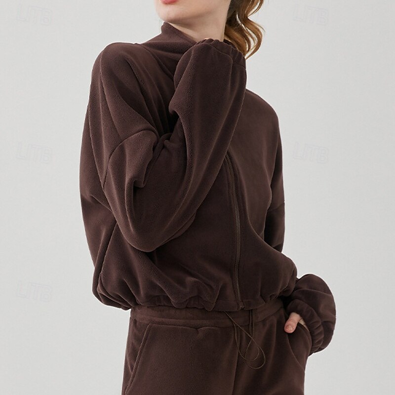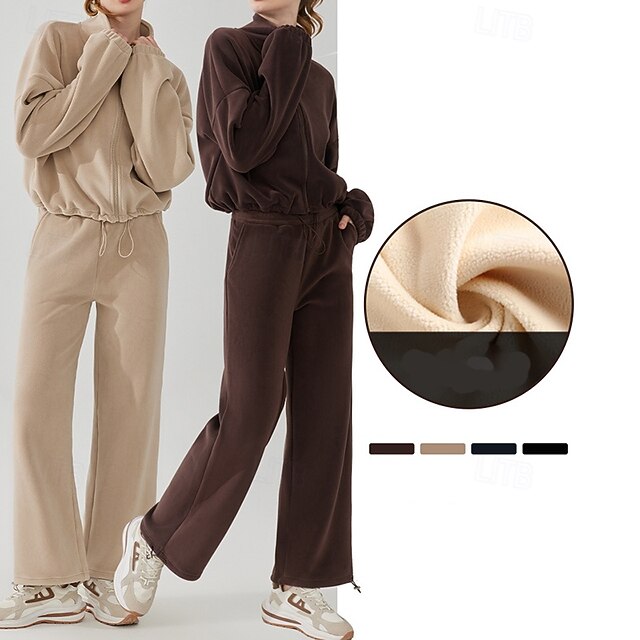 $79.99 - Women's Sport Suit Fleece Sweatsuit Fall Pocket Full Zip Solid Color Clothing Suit Black Khaki Outdoor Running Yoga High Waist Windproof Lightweight Warm Long Sleeve Sport Activewear Loose Fit 2025. Shop for cheap Sets & One-Pieces online? Buy at lightinthebox.com on sale today!