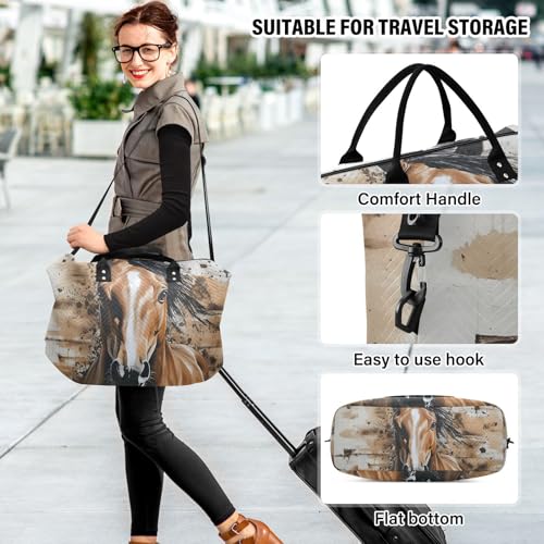 HOT ! Horse Head Art Duffle Bag for Travel, Gym Bag with Multiple Interior Pockets for Men Women Overnight Box Included 20.5 x 1.9 x 13.8 In