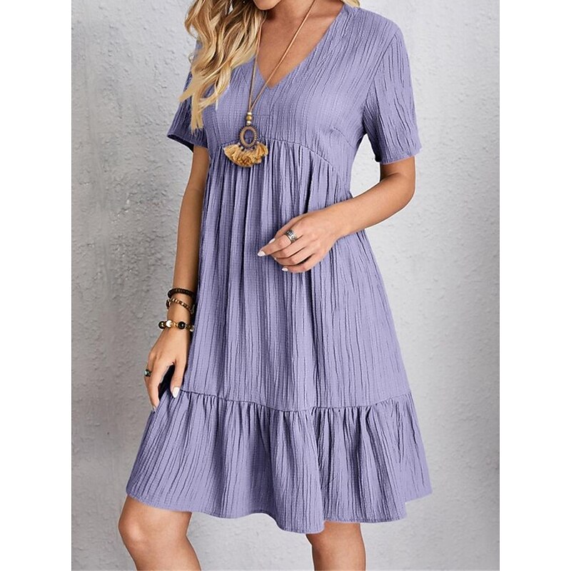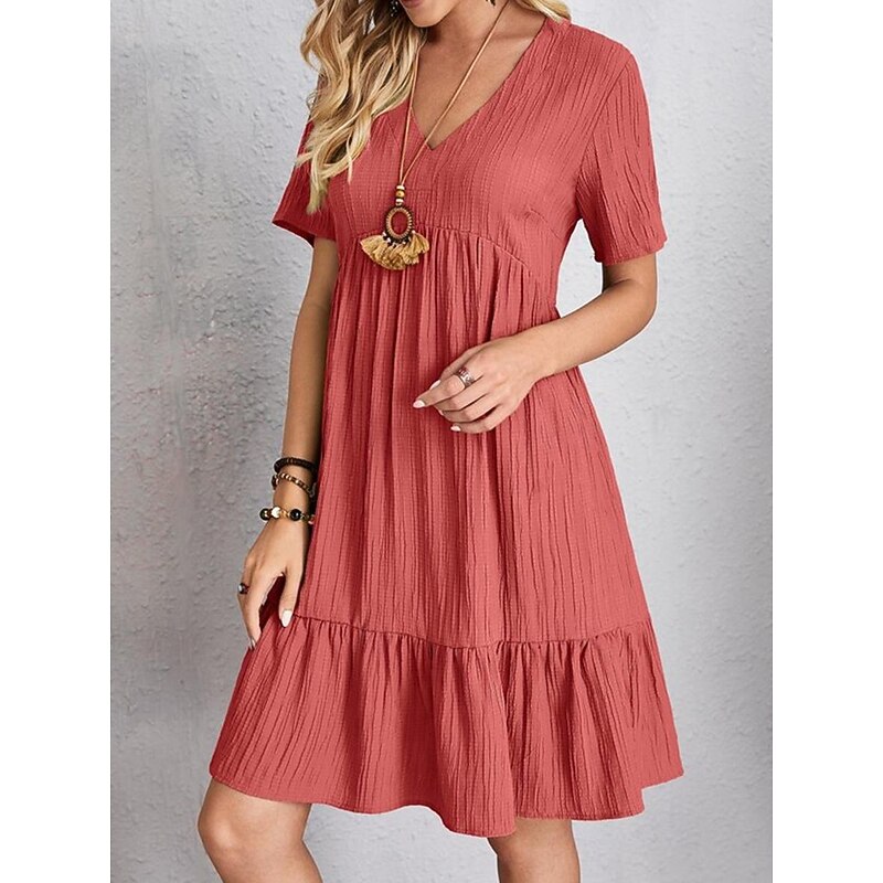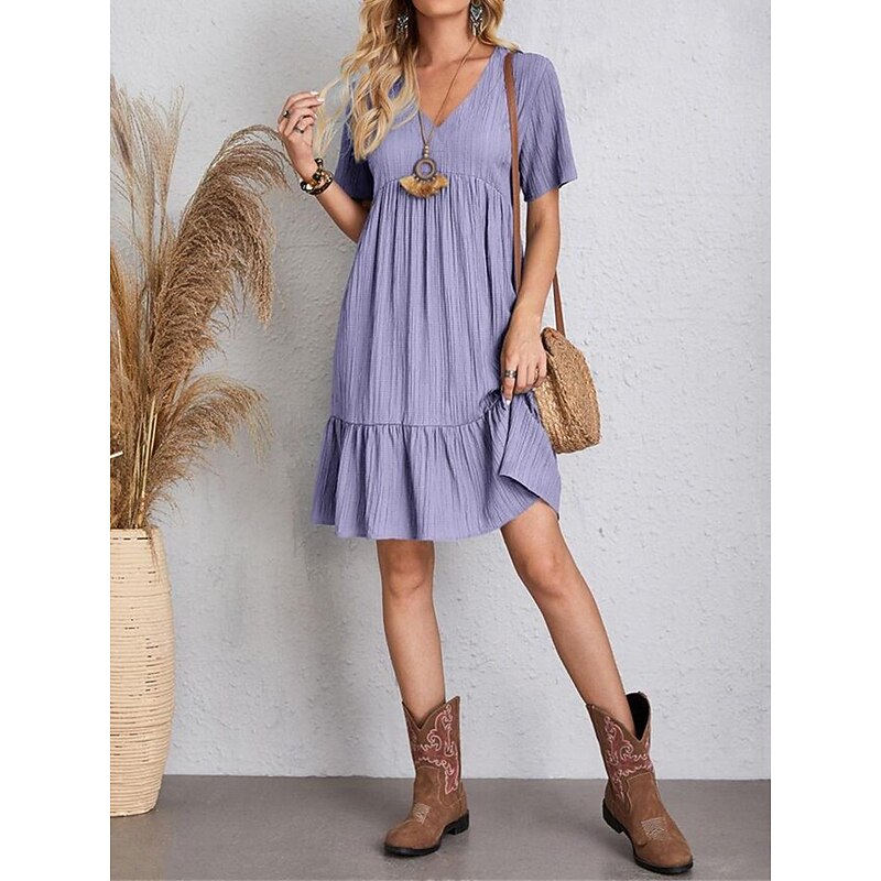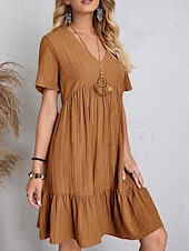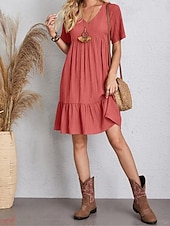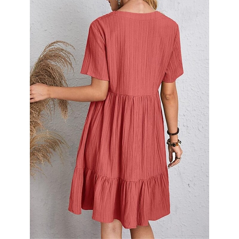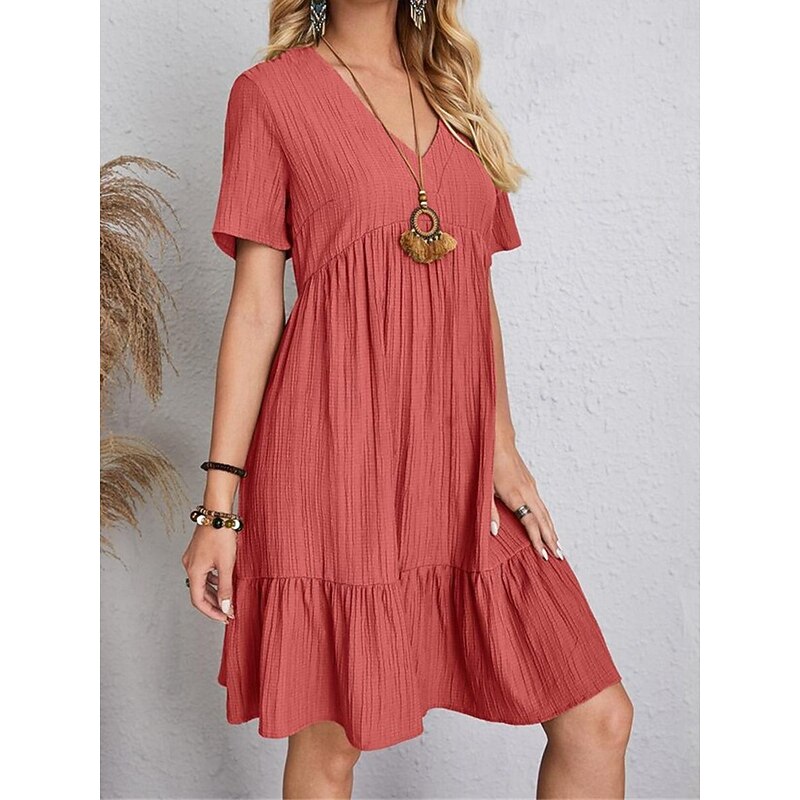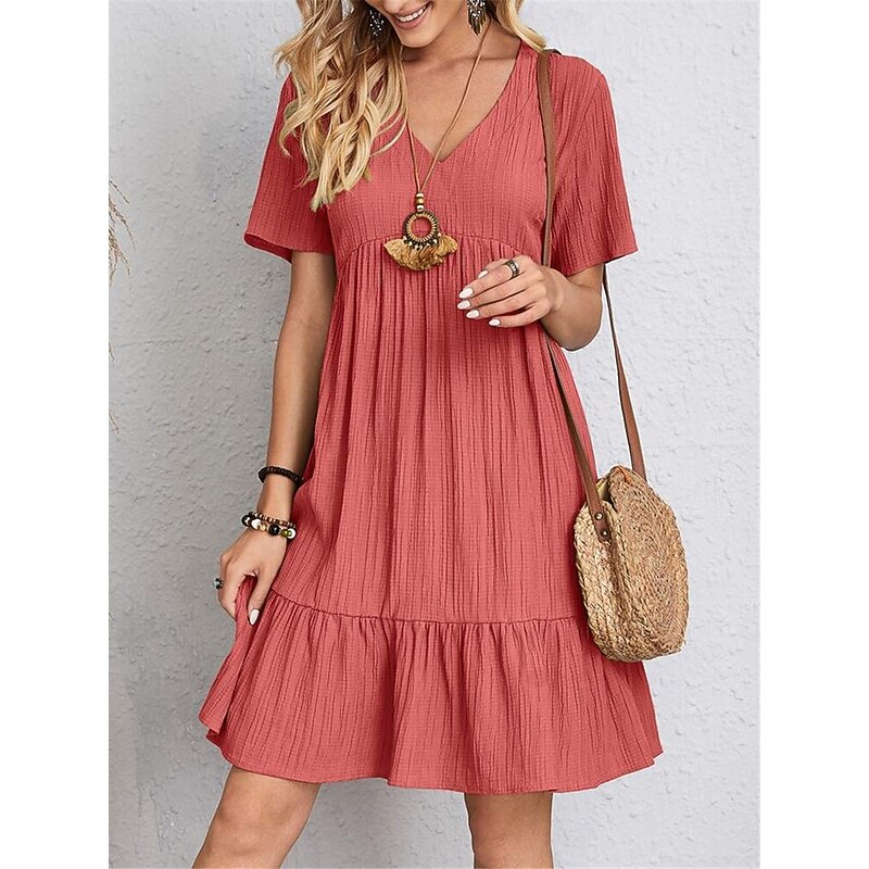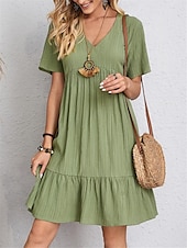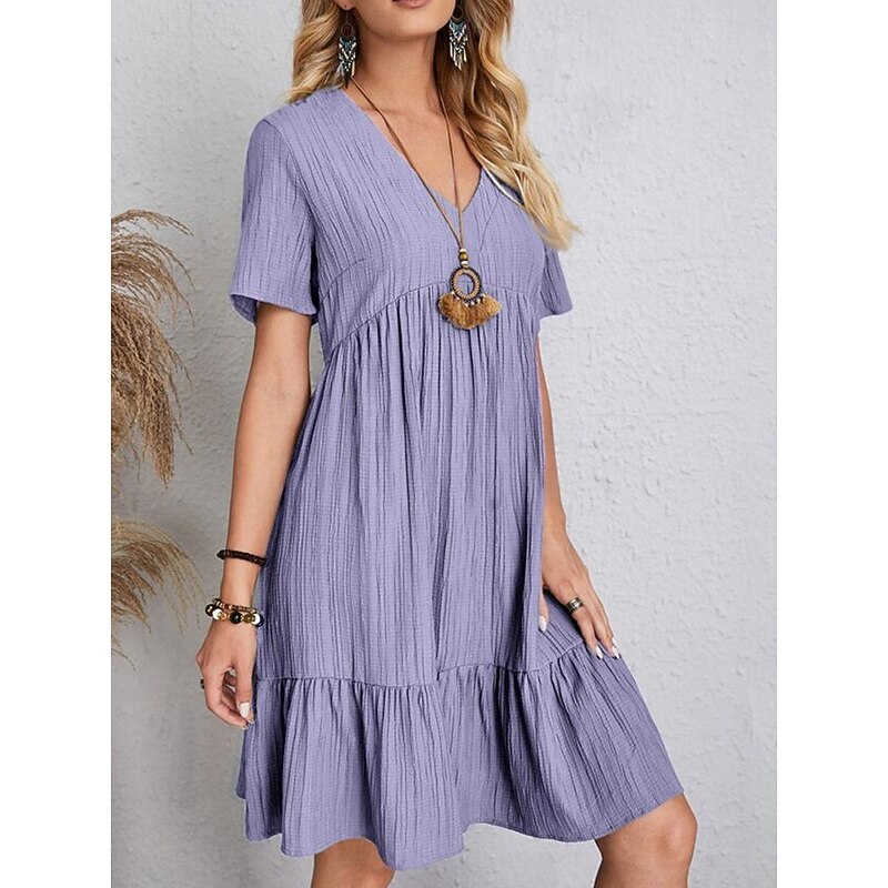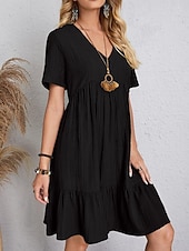 More information about Women's Mini Dress Linen-Inspired Dresses Casual Dress Summer Dress Plain Dress Streetwear Basic Vacation Street Date Loose Fit Short Sleeve V Neck Black Red Purple Brown Summer
