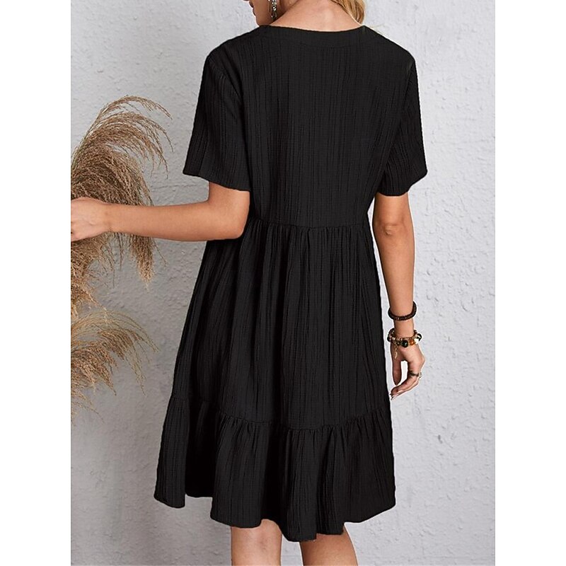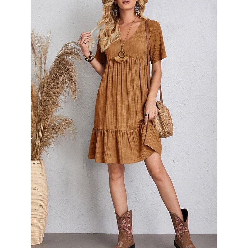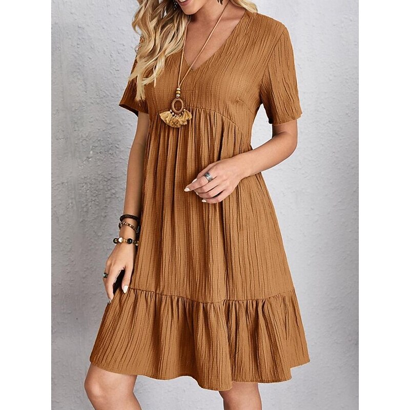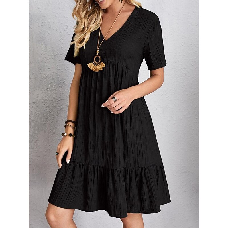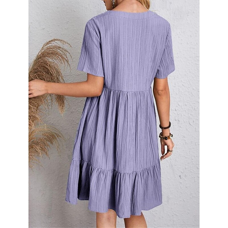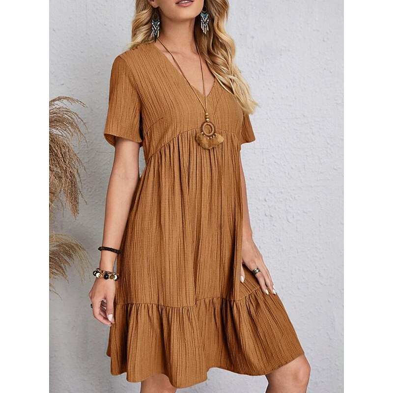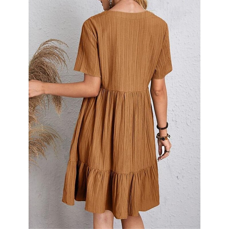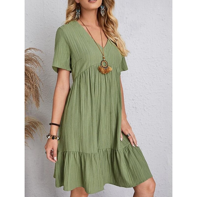 More information about Women's Mini Dress Linen-Inspired Dresses Casual Dress Summer Dress Plain Dress Streetwear Basic Vacation Street Date Loose Fit Short Sleeve V Neck Black Red Purple Brown Summer