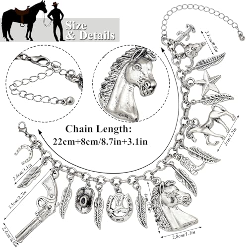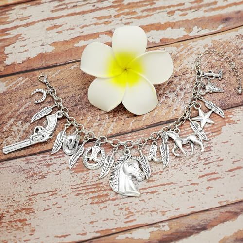 • Various Charms Styles: Package comes with one piece fabulous Bracelet, 18 Charms: Horseshoe,Feather Leaf,Cowboy Hat,Spur Boots,Texas Ranger Star,Bull and Cactus.The lobster clasp and chain can be adjusted according to your wrist size. ideal Wedding Festival Accessories,Trendy and exclusive design makes it outstanding! It is the perfect addition to your coastal wardrobe. A great holiday gift she'll wear year around.