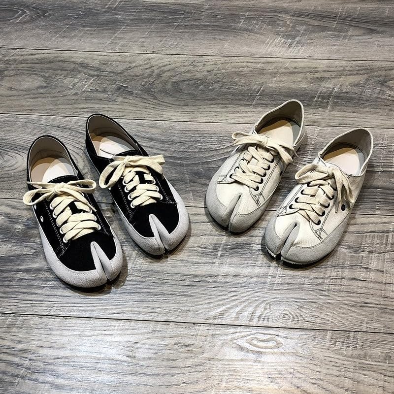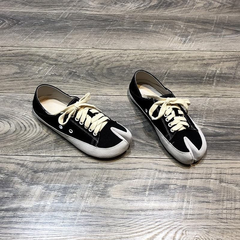 HOT ! Tabi Canvas Sneakers for Women Flat Split Toe Shoes Distressed Vintage Comfortable Walking Footwear Lace Up or Slip On
