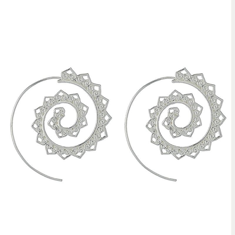 Highlights [Fabric & Material] : Crafted with high-quality metal, these earrings are available in gold-toned or silver finishes, providing durability and a luxurious appearance. [Design & Style] : Featuring an exaggerated swirl gear shape with a retro flair, these earrings boast a unique oval spiral design. The intricate, symmetrical curls lend a bohemian and artistic touch, making them a standout accessory. [Design Highlights] : The open-ended spiral design is both fashionable and functional, allowing for easy wearing and removal. This bold, oversized spiral shape ensures these earrings make a statement. [Occasions] : Perfect for both casual and formal events, these earrings can effortlessly enhance any outfit. Whether at a relaxed gathering, a festive celebration, or a sophisticated occasion, they add an element of charm and style. [Size Range] : Designed as a universal fit, these earrings are suitable for all wearers, making them versatile accessories that complement various personal styles.