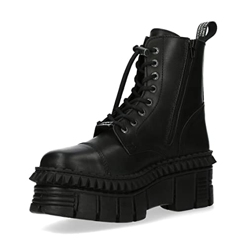 New Rock WALL083CCT-S6 Womens Black Leather Gothic Platform Boots 5