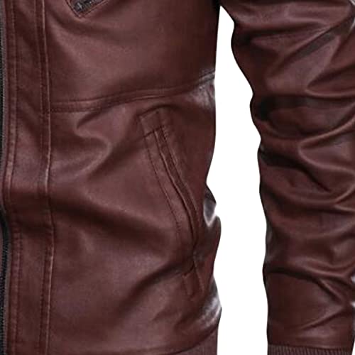 Maiyifu-GJ Motorcycle Jacket for Men PU Faux Leather Removable Hooded Bomber Jacket Vintage Casual Zip Up Warm Winter Coat 6