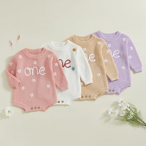 • Design - Infant baby girl 1st birthday sweater romper is designed for first birthday party, “one” and flowers embroidery, full of celebratory birthday atmosphere, a little loose fit style, comfortable and free to wear. Our one year old birthday sweater is a good choice as your baby girl’s 1st birthday outfit