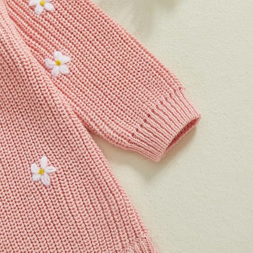 Honganda Infant Baby Girl First Birthday Romper Sweater Long Sleeve One Flower Embroidery Knit Onesie Fall Winter Outfit 7